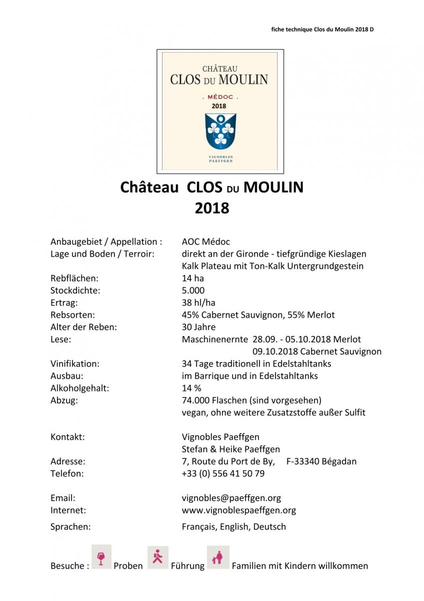 CHATEAU CLOS du MOULIN 2016 - 12 x 0,75L Flasche im Barriquefass gereift.AOC MEDOC55% Merlot45% Cabernet SauvignonPremiumwein im12 Flaschen-Sparset - Sie sparen 36¤ gegenüber der Einzelnflaschen Preis.Lieferumfang:12 x 75 CL Flaschen im Karton