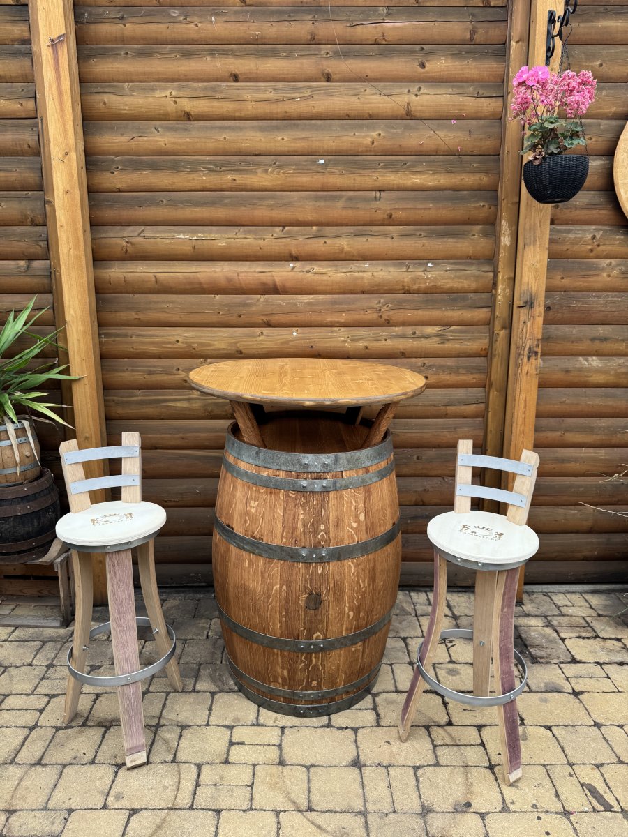 Wer einen FASSTISCH mit 4 Fass-Barhockern nimmt, erhält die 4 Hocker mit 40¤ Nachlass.