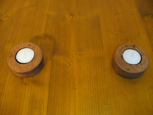 2 x runder Teehlichhalter, Kärzenständer, Kärzenhalter angefertigt aus original Fassdauben aus massivem Eichenholz.