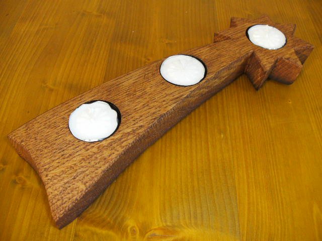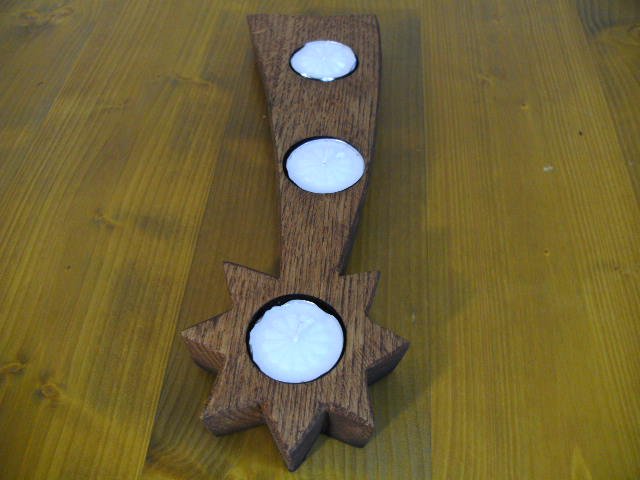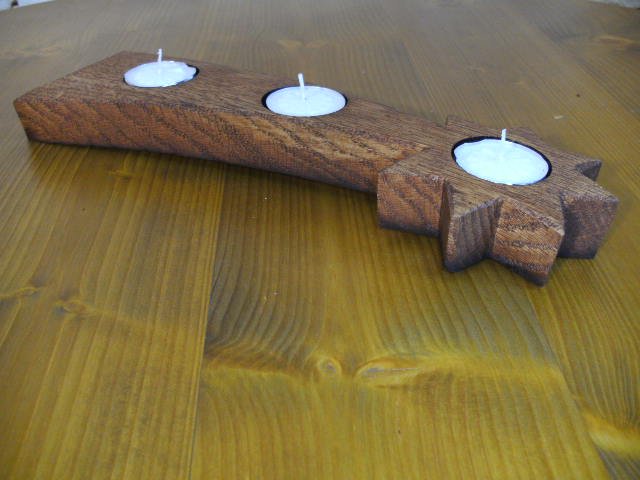 Sternformige Teehlichhalter für drei Teelichter, Kerzenständer, Kerzenhalter angefertigt aus original Fassdauben aus massivem Eichenholz.