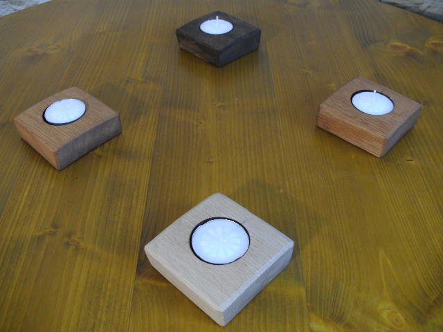 5 x quadratischer Teehlichhalter, Kerzenständer, Kerzenhalter angefertigt aus original Fassdauben aus massivem Eichenholz.