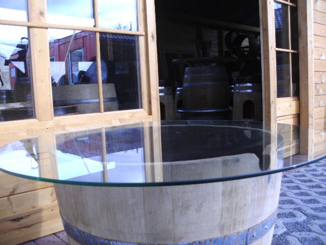 zur Verwendung als Tischplatte auf einem Fass oder Fassabschnitt