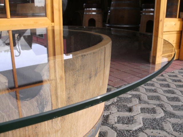 Die Glasplatte wird direkt oder auf Weinflaschen-Korken Scheiben(nicht im Lieferumfang enthalten) auf das Fass oder den Fassabschnitt nur lose aufgelegt und nicht mit diesem verbunden. Durch die Schwere der Glasplatte liegt diese sicher auf dem Fass oder dem Fassabschnitt auf.