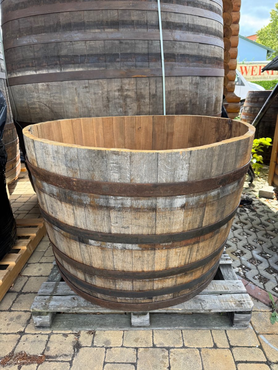 Ca. 750 Liter Eichenfasshälfte Durchmesser 120cm und Höhe 88cm als Miniteich Pflanzenkübel Saunatauschbecken