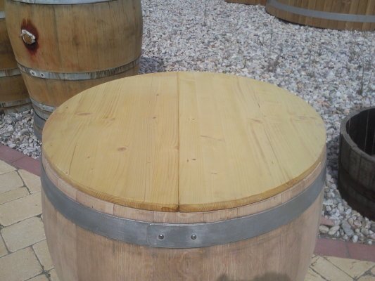Deckel für Fass-Regentonne aus Leimholz mit 70cm. Durchmesser mit UV-Schutzlasur in Farbton Eiche lasiert.